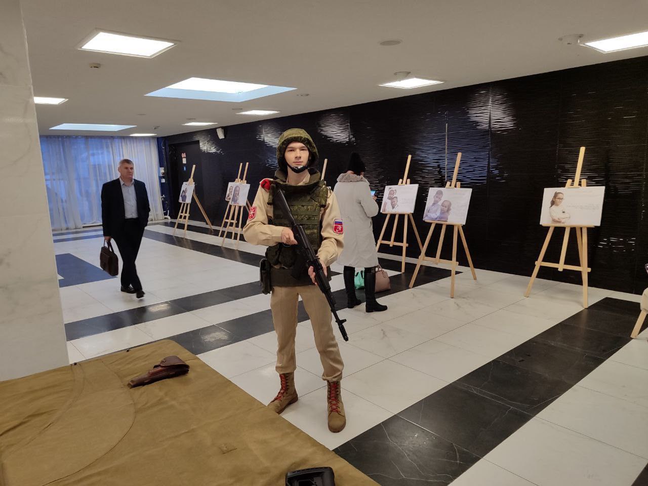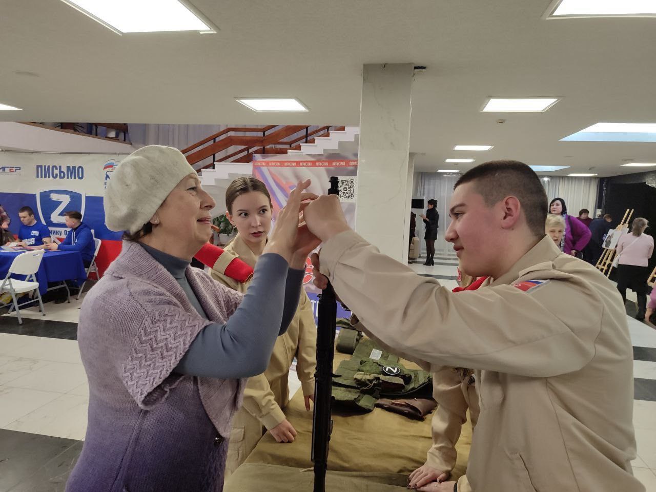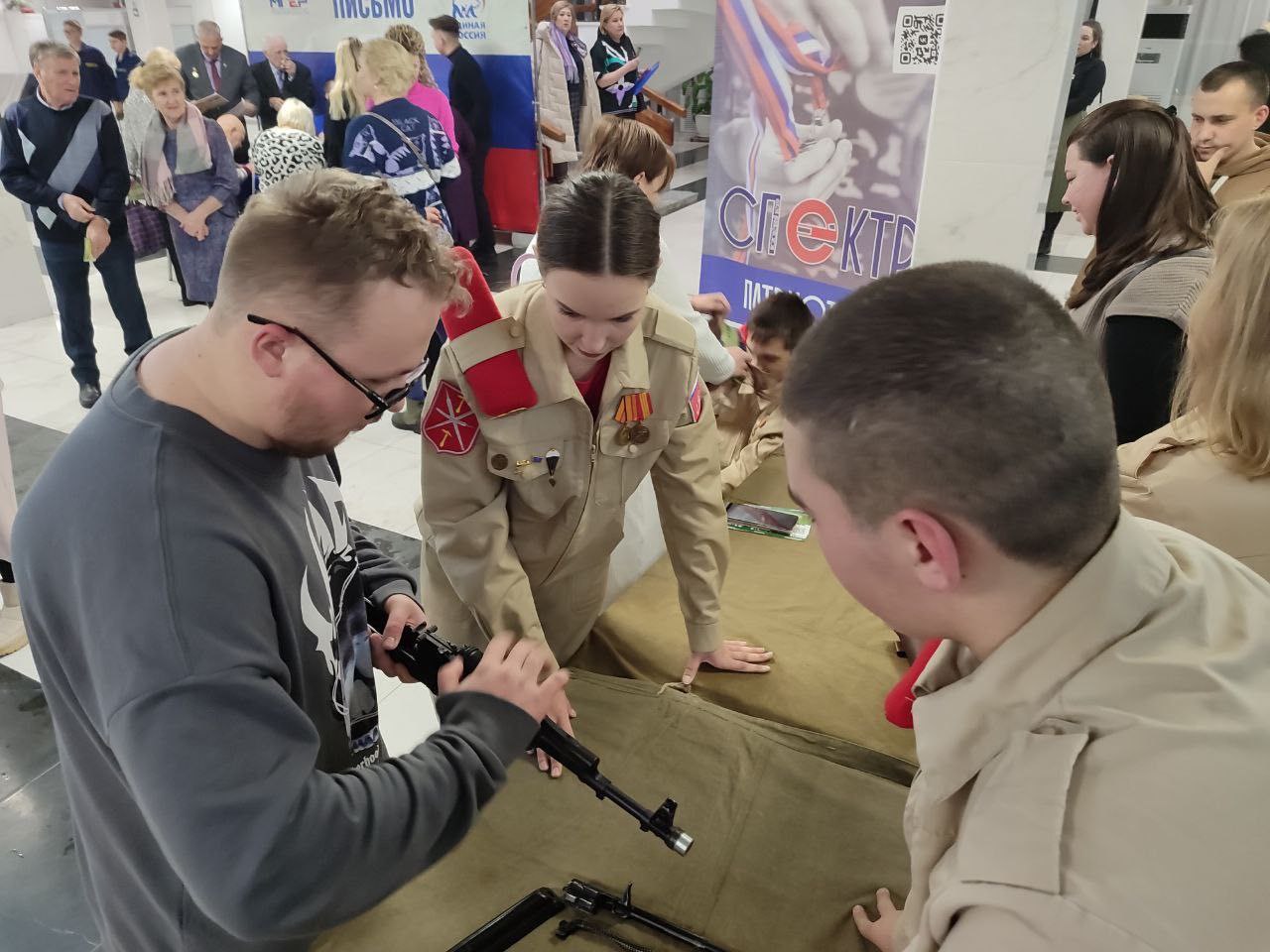 Воспитанники военно-патриотического клуба «Звезда» МБОУ «ЦО-гимназия №11 им. А. и О. Трояновских» перед концертом провели мастер-класс по обращению с современными образцами вооружения и снаряжения.