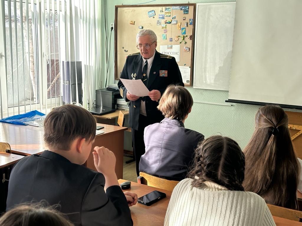 Накануне этой памятной для нашей истории даты в гости к 10А классу МБОУ «ЦО-гимназия №11 им. А. и О. Трояновских» пришел председатель Совета старшин Тульского Морского собрания капитан 2 ранга в отставке Чиджавадзе Валодия Корнелович.