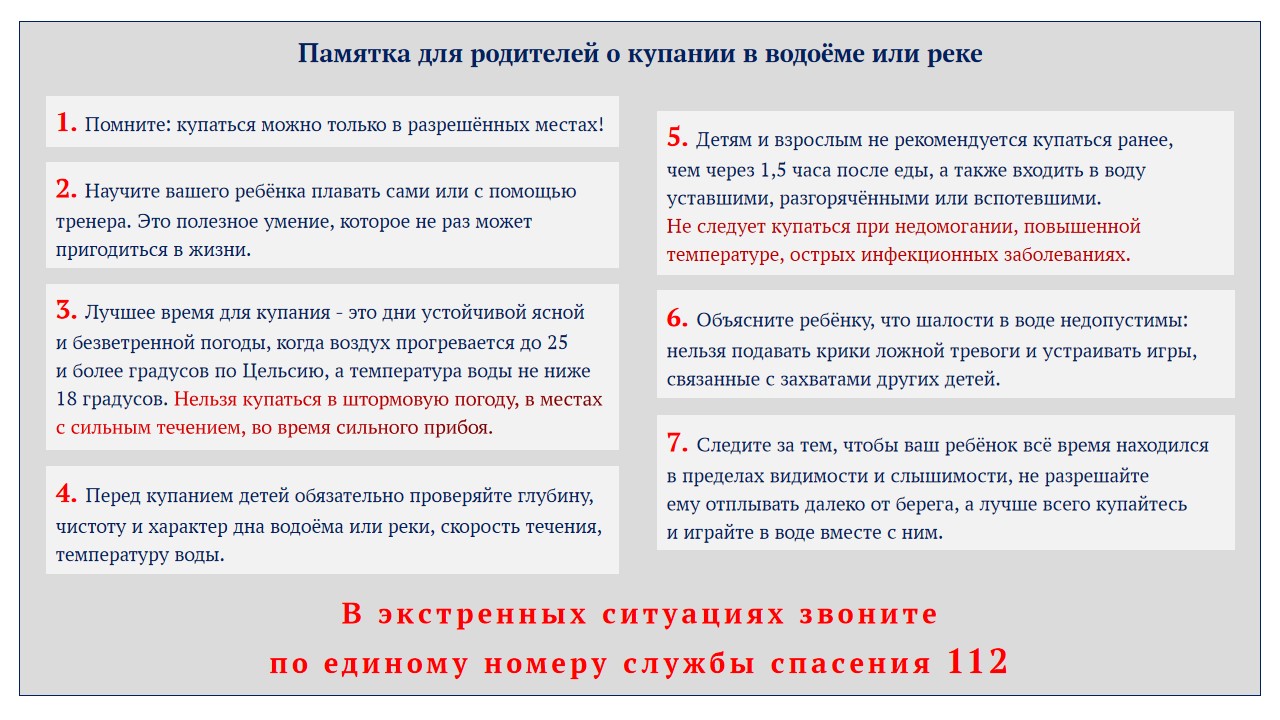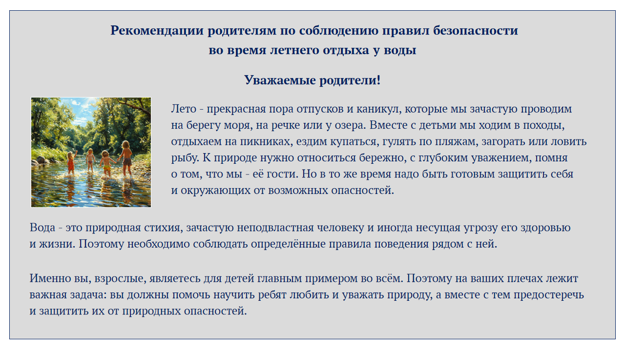 Рекомендации родителям по соблюдению правил безопасности во время летнего отдыха у воды