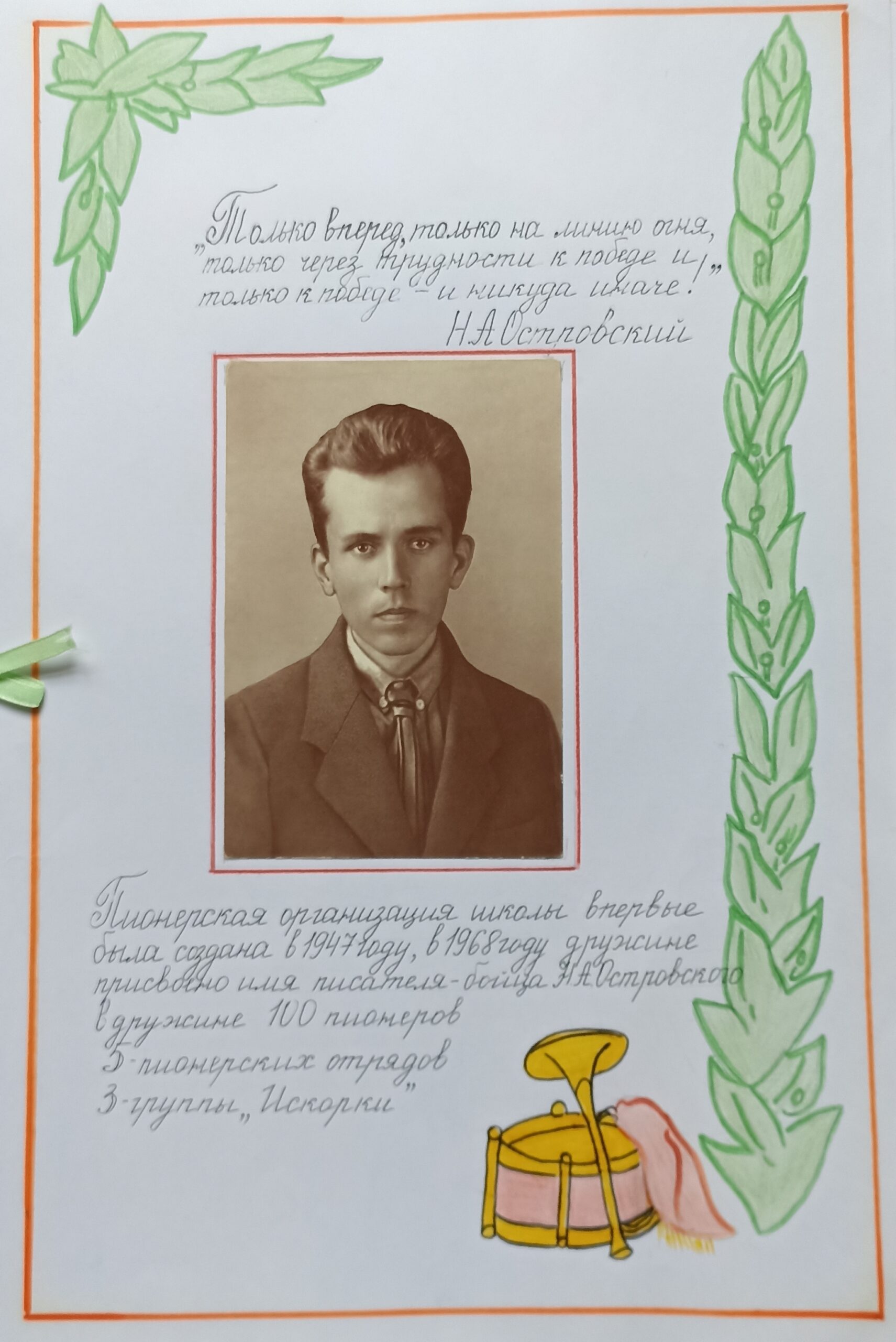 3. Учитель русского языка и литературы Егорова Л.А. разработала эмблему пионерской дружины им. Н.А. Островского.