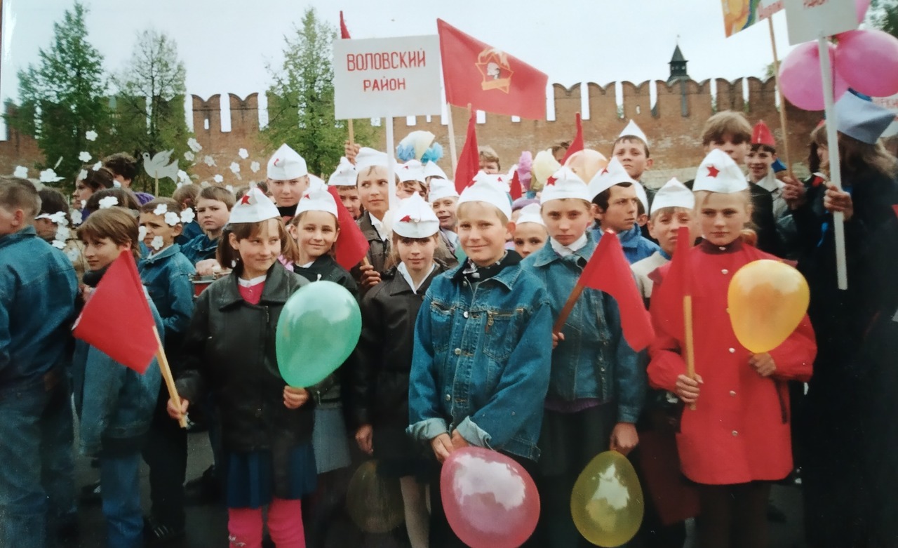 На областной торжественной линейке учащихся приняли в пионеры, повязали галстуки. Отдельным пионерам пионерский галстук повязал Стародубцев В.А., так в школе появился пионерский отряд. А через год в мае 2000 года в школе образовалась пионерская дружина имени Е.В.Хрунова.