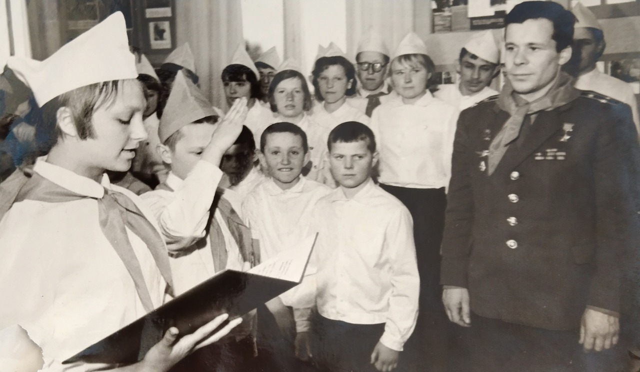 - 1969 г. 10 февраля Принятие в почётные пионеры Е.В.Хрунова летчика-космонавта