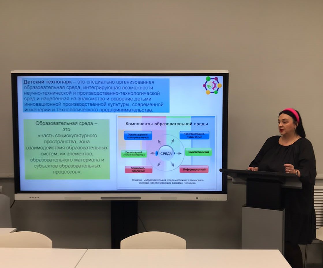 Руководитель структурного подразделения ГОУ ДО ТО «ЦДОД» «Детский технопарк естественнонаучной направленности» Наталья Николаевна Завьялова познакомила коллег с возможностями образовательной среды технопарка естественнонаучной направленности в реализации программ дополнительного образования и повышении качества образования.