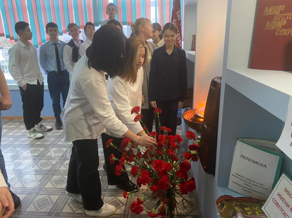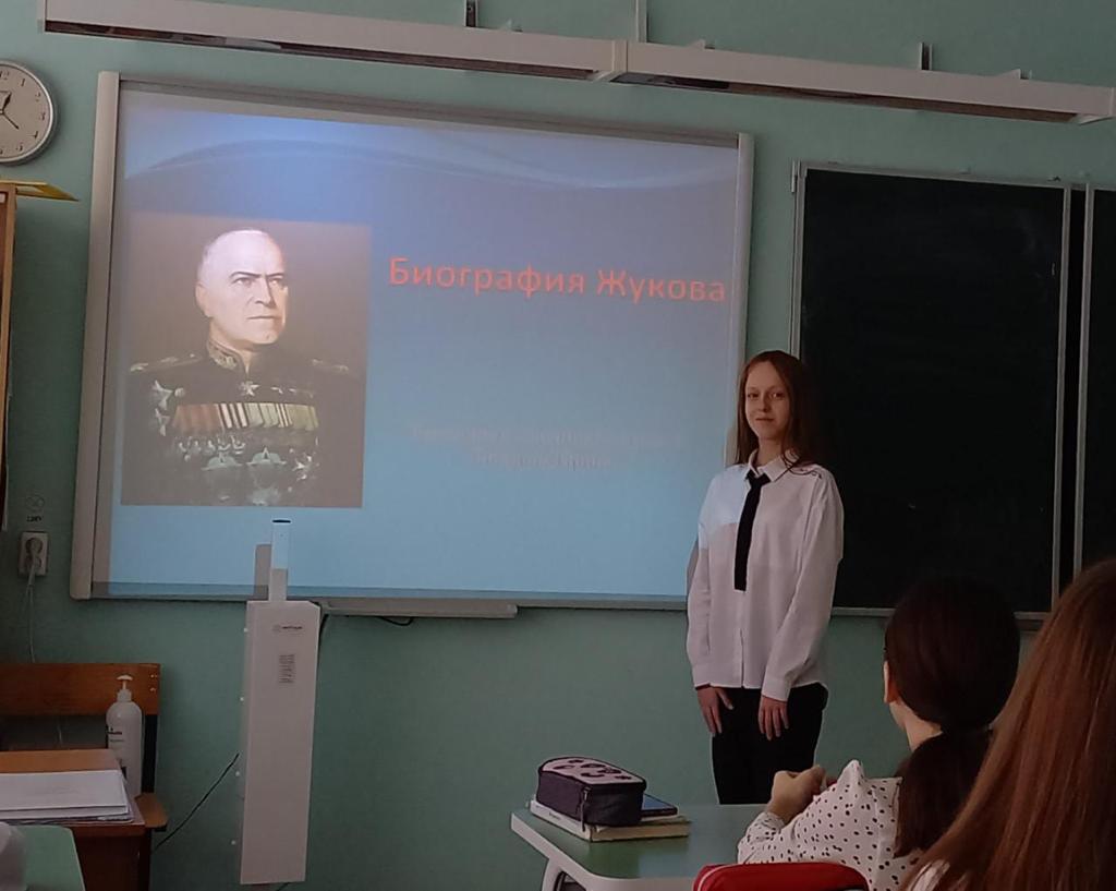 1 декабря в объединениях обучающихся «Туристы-краеведы (фольклорно-этнографическое краеведение)» педагоги Тюрина Елена Борисовна и Демидова Ирина Ивановна провели занятие — экскурсию в уголок Боевой славы, посвященную 125-летию со Дня рождения Маршала Советского Союза Георгия Константиновича Жукова.