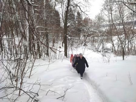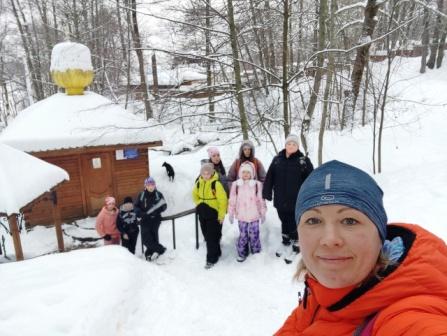 Старт был в п. Хомяково. По пути отработали технику ориентирования на местности и технику тропления в группе, когда каждый участник идет по следам впереди идущего. Сделали привал, перекусили и отправились дальше. Вышли к конюшне, где тренируют лошадей. Здесь же можно научиться верховой езде. Перешли р. Холкельца по плотине. Финиш был в с. Архангельское, где ребята посетили часовню и побывали на святом источнике арх. Михаила. Всего прошли 8 километров.