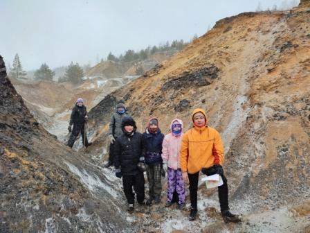 Горы — это отвалы отработанной породы. Здесь в 30х годах добывали огнеупорную глину, а также, в Суворовском районе добывали бурый уголь. Ребята увидели, как он выглядит.