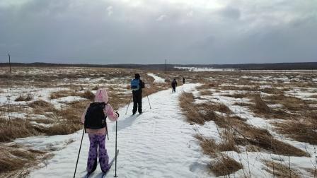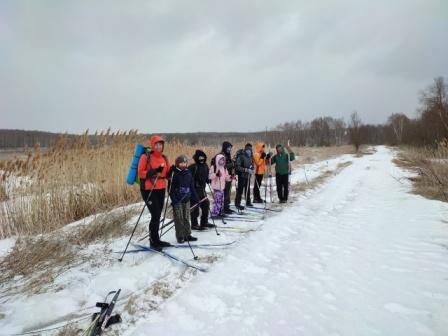 На станцию «Балево» поезд прибыл в 9 часов утра. Устремив свой взор в поле, увидели, что сюда уже пришла весна, и снег в поле почти весь растаял. Туристы надели лыжи и по снежным островкам отправились в путь. Далее, вышли на грунтовую дорогу, на которой ещё лежал слежавшийся за зиму снег. Ветер дул с такой силой, что, иногда, не приходилось даже отталкиваться палками. Была настоящая зимняя погода с вьюгой и поземкой, характерная для февраля месяца. Вскоре мы зашли в лес, там стало тише. По просеке дошли до карьеров и сделали привал. Приготовили вкусный обед на костре!