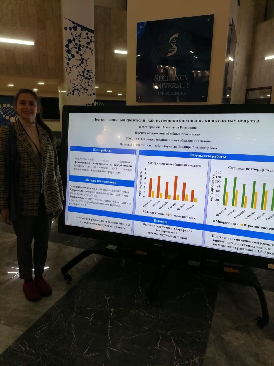 19 мая 2022 года обучающаяся детского объединения «Зеленые технологии» вместе со своим научным руководителем, старшим методистом Абрамовой Эльвирой Александровной, приняла активное участие в работе Всероссийской научно-практической конференции с международным участием «Медицинская весна — 2022». Организатором данного мероприятия является Первый Московский государственный медицинский университет им. Сеченова (Сеченовский Университет).