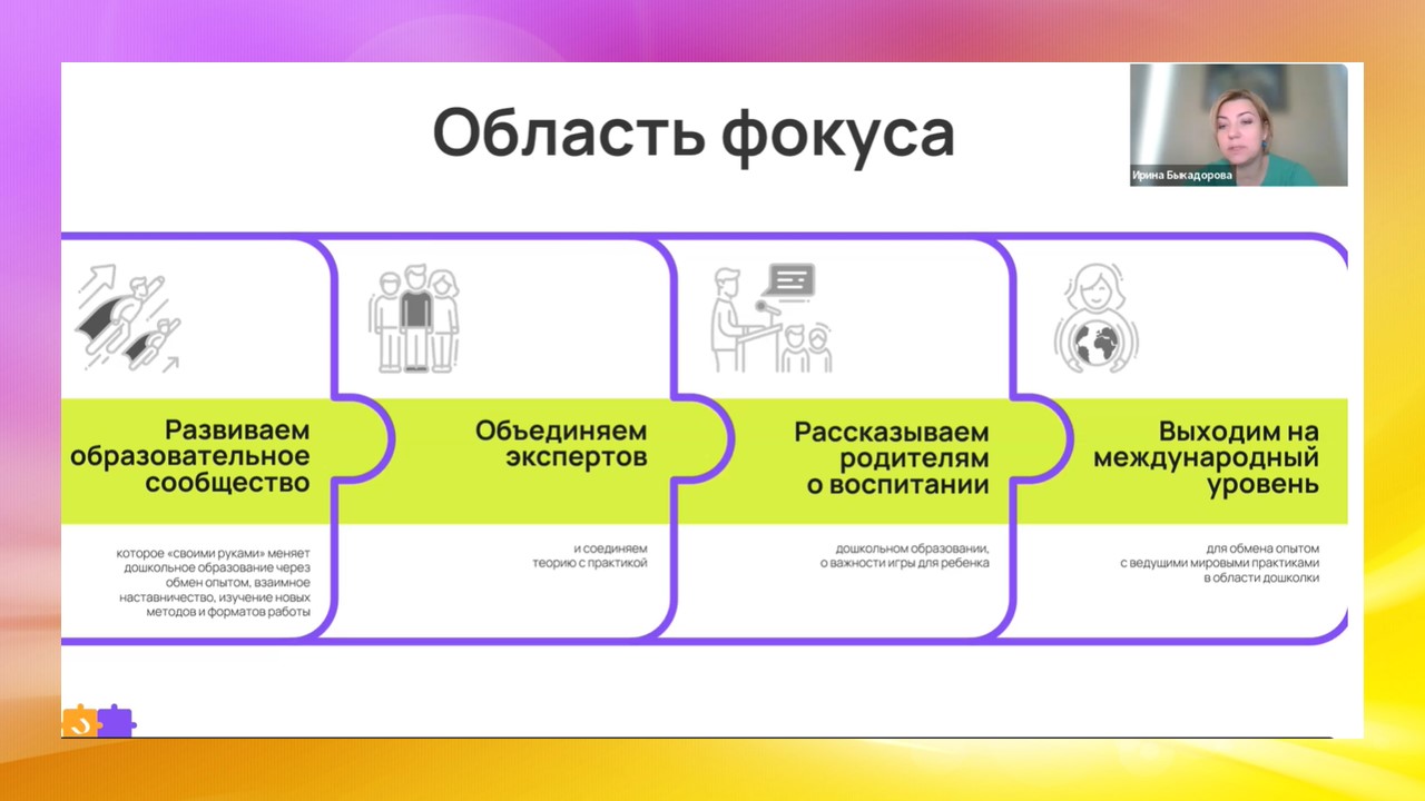В формате нетворкинга участники обсудили тему «Формирование естественнонаучных представлений как средство развития познавательной активности дошкольников». Интересные люди, увлеченными своим делом, делились своим опытом, рассказывали о современных педагогических технологиях, о возможных форматах взаимодействия учреждений дошкольного и дополнительного образования с общественными организациями, представляли свои авторские разработками, познакомились с проектом «Игра 4Д».