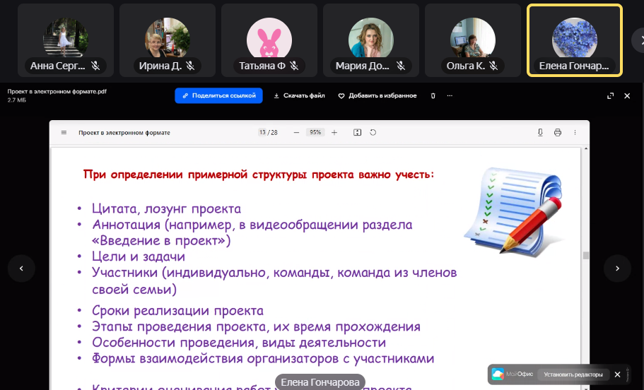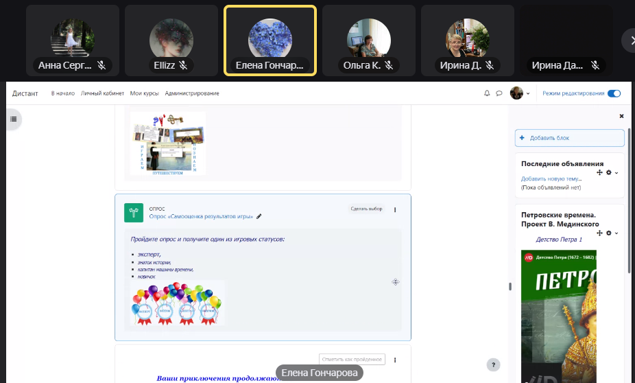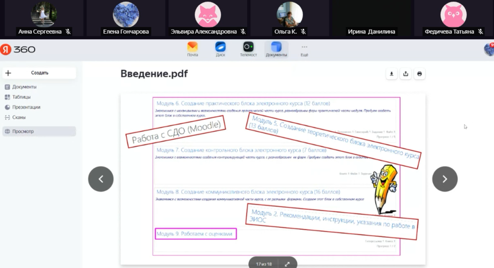 8 ноября  состоялся вебинар «Начало работы в системе дистанционного обучения», 15 ноября — вебинар «Создание теоретической части электронного курса», 22 ноября прошли индивидуальные консультации в формате видео-встреч,  29 ноября — вебинар  «Cоздание проекта в системе дистанционного обучения»