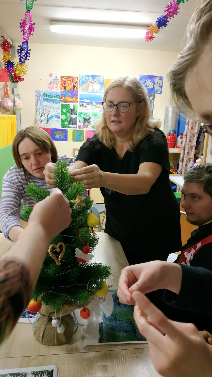 Методисты ГОУ ДО ТО «Центр дополнительного образования детей» Золотайкина Людмила Львовна и Никулина Елена Алексеевна в предновогодние дни вновь побывали в Тульском региональном обществе матерей с детьми-инвалидами «Свет ты мой». В этот раз они провели для детей и мам новогоднее интерактивное занятие «Обитатели зимнего леса». Путешествуя по лесу, ребята узнали много интересного о его жителях. Поближе познакомились с лесной красавицей Ёлкой – главной героиней предстоящего праздника, узнали, когда и как она стала главным символом Нового года. Все вместе, дружно нарядили ёлочку по старинному обычаю: ленточками, яблочками, пряничками, конфетками да бараночками. Ведь вокруг ёлки зимой не только люди собираются, она зверей и птиц всю зиму кормит! Ребята обещали беречь ёлочки в лесу и подкармливать птиц зимой. Все участники праздника пожелали друг другу крепкого здоровья, хорошего настроения, успехов в Новом году, исполнения желаний!