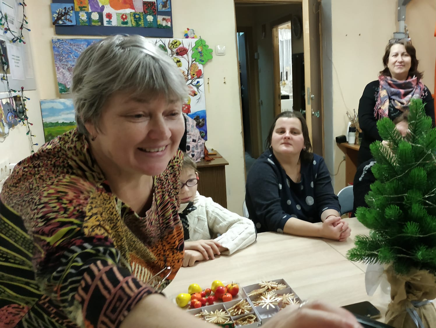 Методисты ГОУ ДО ТО «Центр дополнительного образования детей» Золотайкина Людмила Львовна и Никулина Елена Алексеевна в предновогодние дни вновь побывали в Тульском региональном обществе матерей с детьми-инвалидами «Свет ты мой». В этот раз они провели для детей и мам новогоднее интерактивное занятие «Обитатели зимнего леса». Путешествуя по лесу, ребята узнали много интересного о его жителях. Поближе познакомились с лесной красавицей Ёлкой – главной героиней предстоящего праздника, узнали, когда и как она стала главным символом Нового года. Все вместе, дружно нарядили ёлочку по старинному обычаю: ленточками, яблочками, пряничками, конфетками да бараночками. Ведь вокруг ёлки зимой не только люди собираются, она зверей и птиц всю зиму кормит! Ребята обещали беречь ёлочки в лесу и подкармливать птиц зимой. Все участники праздника пожелали друг другу крепкого здоровья, хорошего настроения, успехов в Новом году, исполнения желаний!