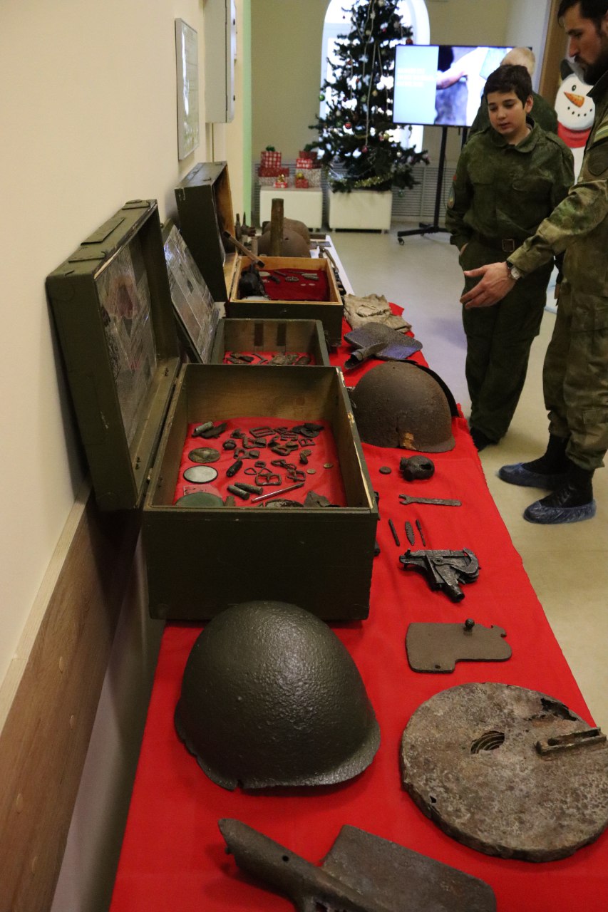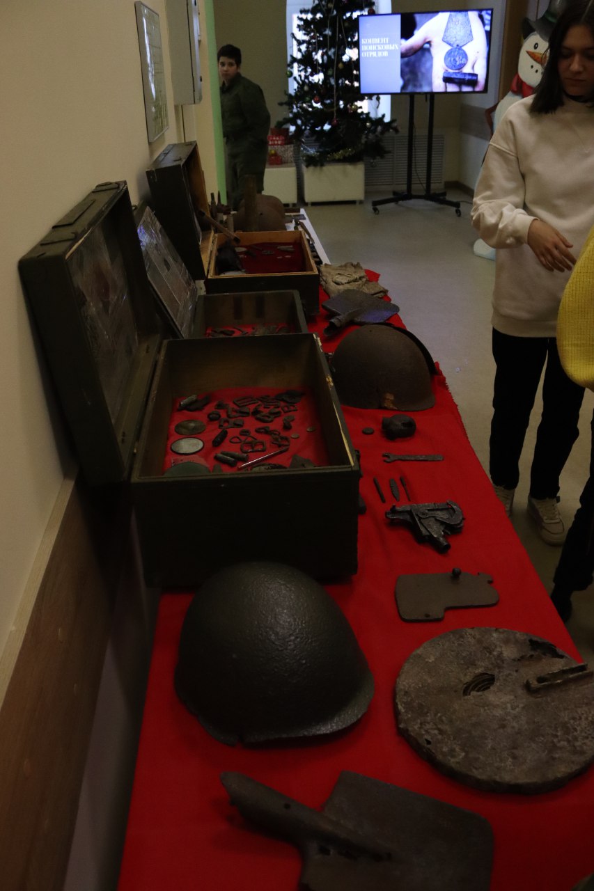 Поисковой организацией «Искатель» была организована выставка экспозиции «Музей в чемодане». Ребята смогли увидеть реликвии, найденные поисковиками в экспедициях, проходивших на территории Тульской области.