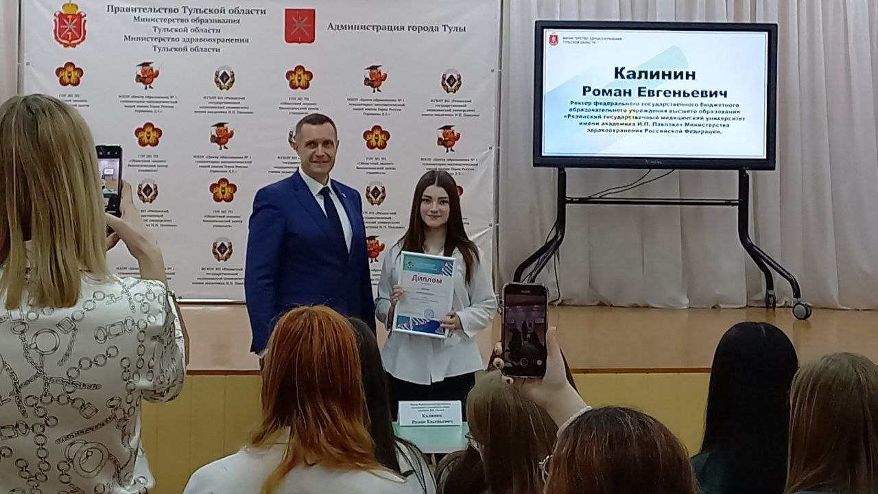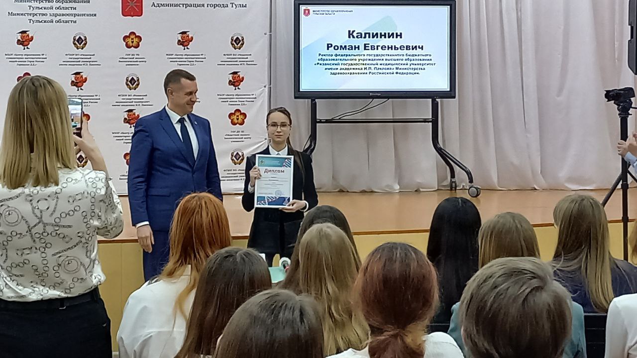 На встрече Морозов Владимир Борисович поддержал обучающихся в выборе профессии, настроил выпускников на дальнейшую работу. Нестерова Евгения Владимировна подробно рассказала о мерах поддержки молодых специалистов-медиков, осуществляемых в регионе. Калинин Роман Евгеньевич вручил обучающимся дипломы призёров Олимпиады РязГМУ для школьников по биологии.