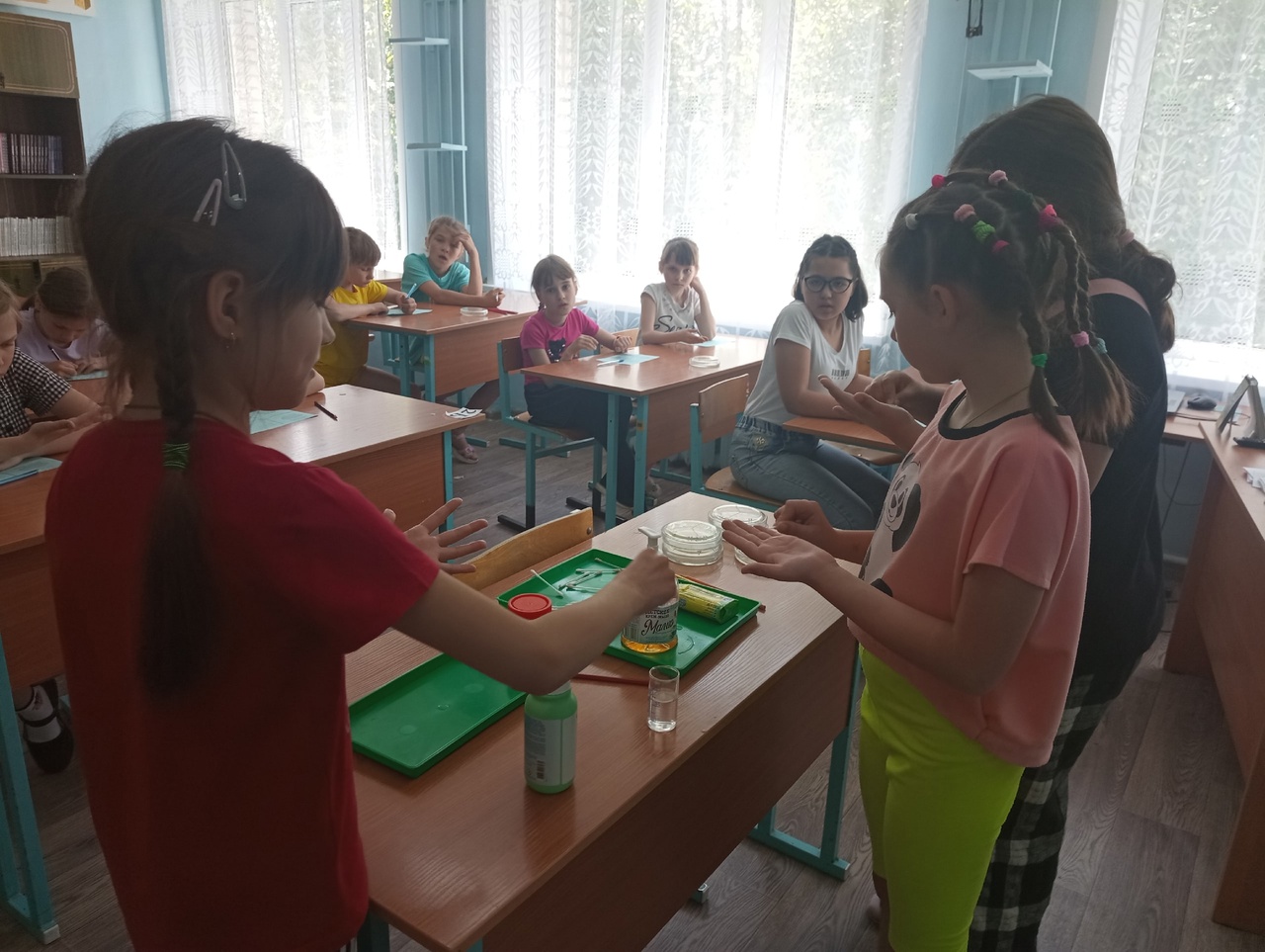 Ребята узнали почему некоторые из бактерий называются патогенными (болезнетворными), а другие — полезными и сделали вывод, что изучать бактерии интересно! А ещё интереснее самим наблюдать их под микроскопом, а также рассматривать настоящие колонии бактерий в чашках Петри.
