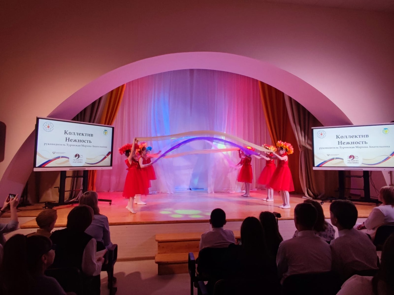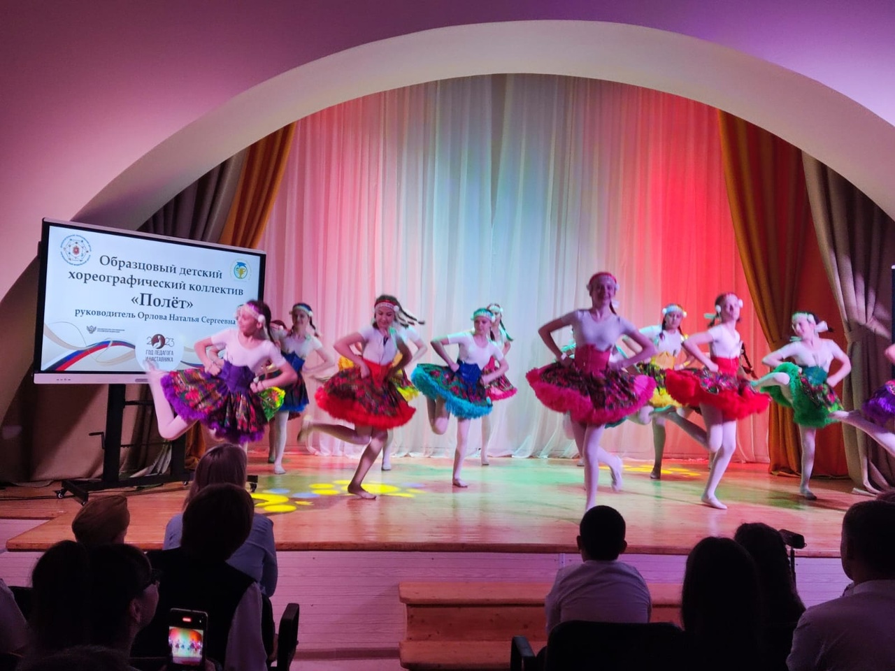 Участники пели, танцевали, демонстрировали гимнастические этюды. Все номера посвящены Году педагога