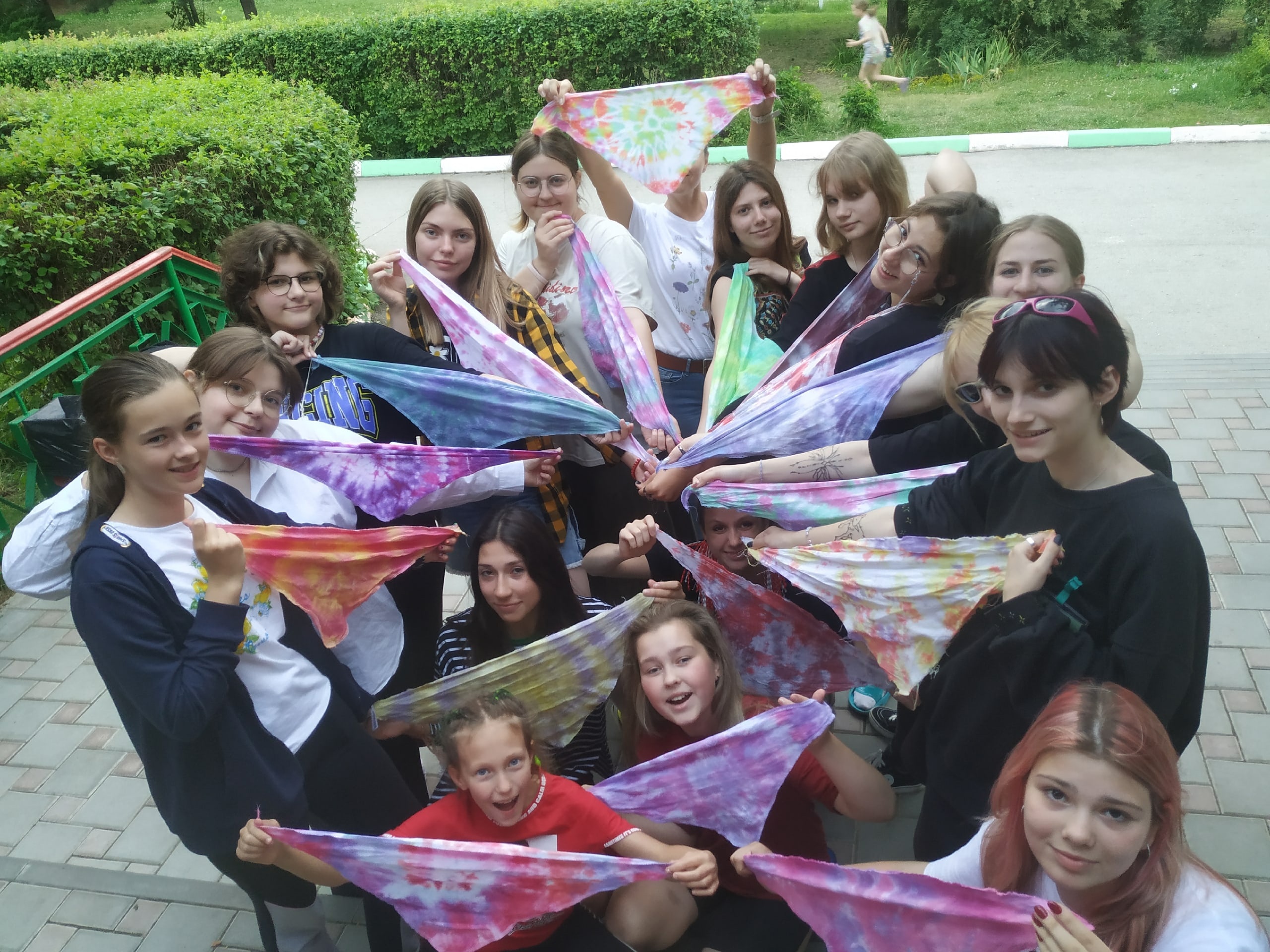 Вечером участники мастер-класса по технике тай-дай продемонстрировали результаты своей работы. У каждого получился свой уникальный узор! Оригинальный сувенир на память о смене