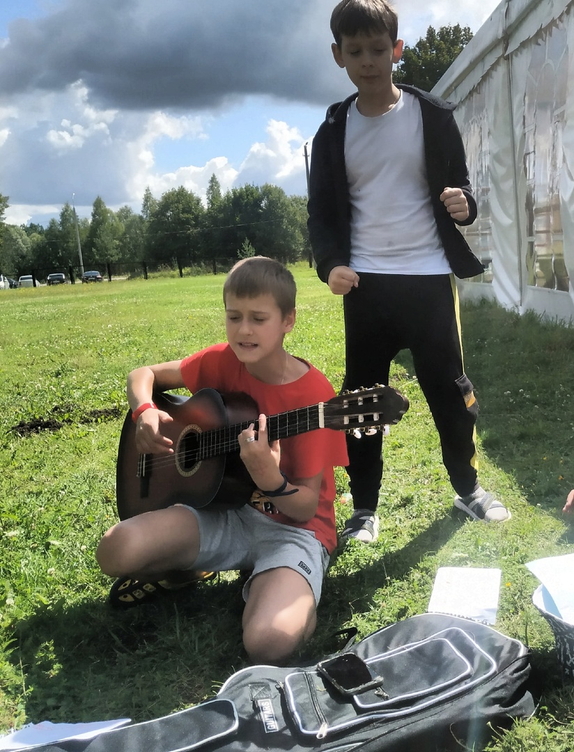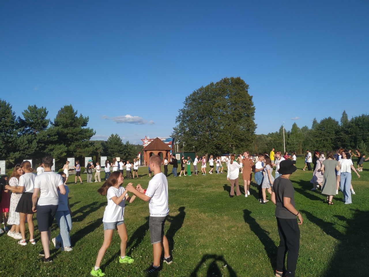 А потом ребята водили большой хоровод на зелёной поляне и насыщались самыми полезными витаминами — витаминами радости. Яркое солнце голубое небо, народные игры и песни.