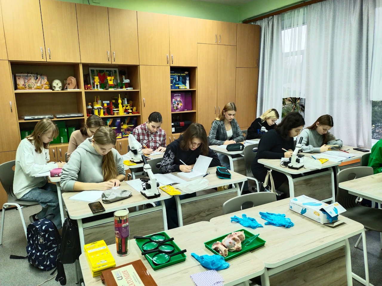 На практическом занятии по биологии ребята развивали навыки и умения работы с микроскопом, познакомились с особенностями состава и строения костной и хрящевой тканей, разновидностями костей, типами их соединения.