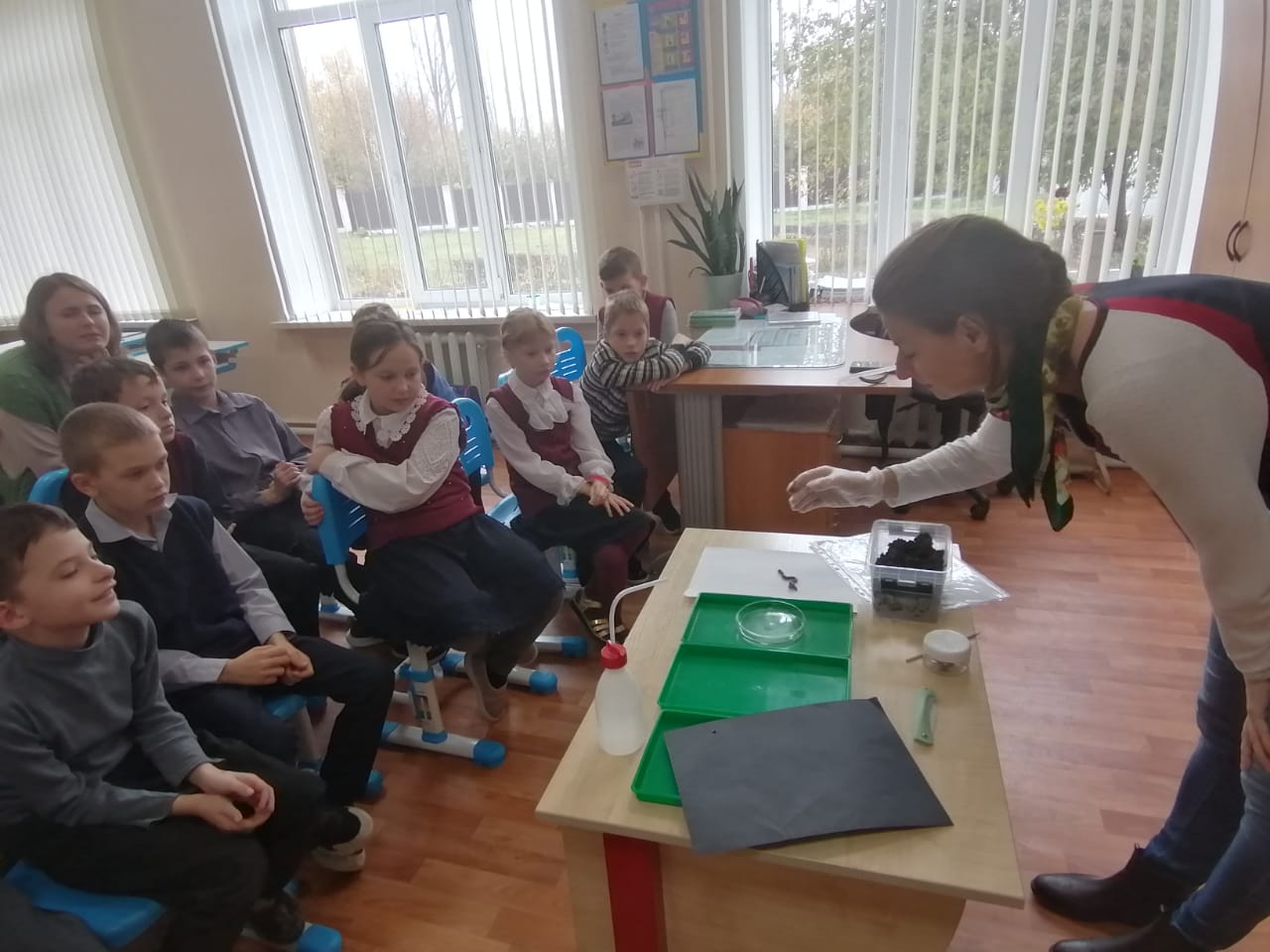 Третью площадку, «Где зимой живет червяк?», представила педагог Галина Александровна Барская. Ребята смогли понаблюдать за дождевыми червями, узнали, что к зиме они погружаются в глубокий сон, зарывшись глубоко в землю.