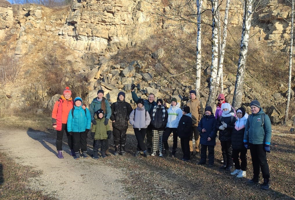 День был солнечный и морозный. Поход начался  с Барсуковского карьера с небольшим озером. На маршруте ребятам встретились туристы, которые отрабатывали свои навыки по скалолазанию на отвесной скале.