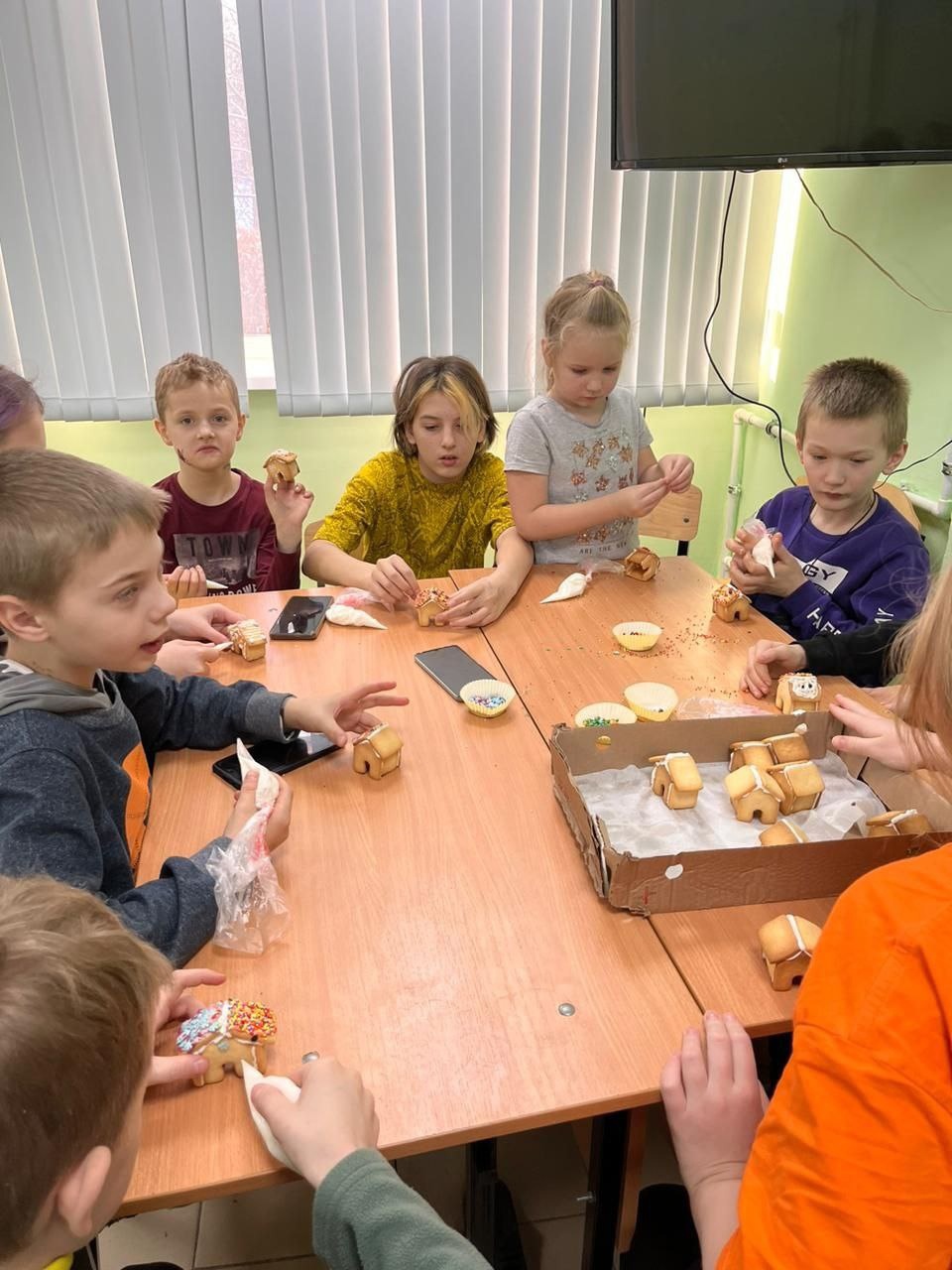 В лагере для школьников были организованы мастер-классы по вязке туристических узлов и лыжные гонки. Ребята подготовились к празднованию Рождества — своими руками расписали пряничные домики.