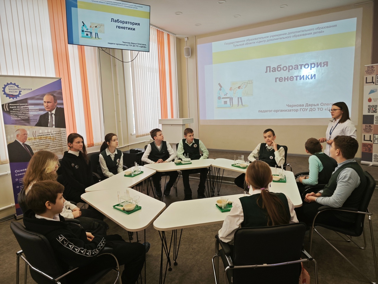 • Лаборатория генетики, Чернова Дарья Олеговна. Участники познакомились с профессией генетик, узнали о важности использования генетических технологий в современном мире, на практике выдели молекулы ДНК из банана;