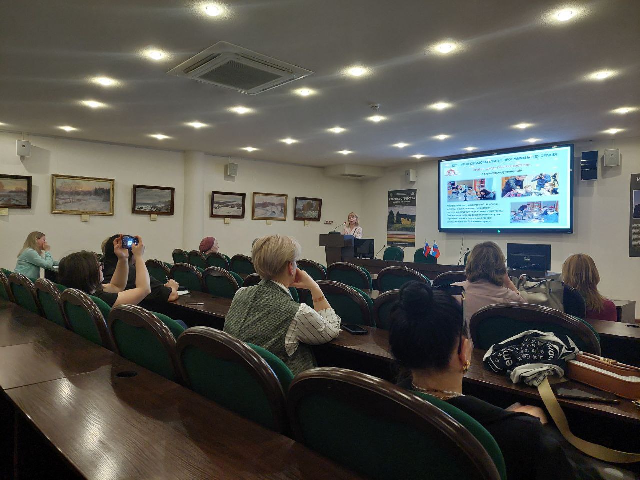 Перед руководителями образовательных музеев выступили заведующая экскурсионным отделом музея Машкова Марина Вячеславовна с темой «Методика подготовки и проведения экскурсии» и заведующая отделом культурно-образовательной деятельности музея Ковалева Елена Вячеславовна с темой «Культурно-образовательная программа «Мы родом не из детства – из войны».