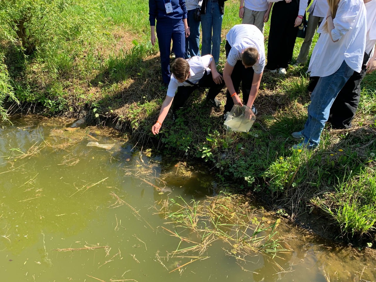 Экосистема пруда пополнилась новыми обитателями, мальками карпа. Участники Акции познакомились
