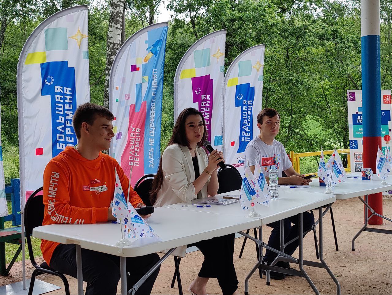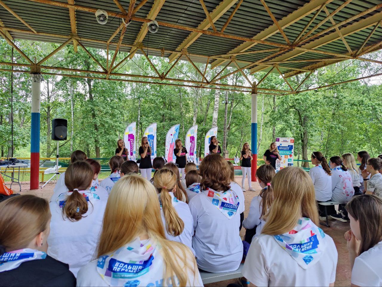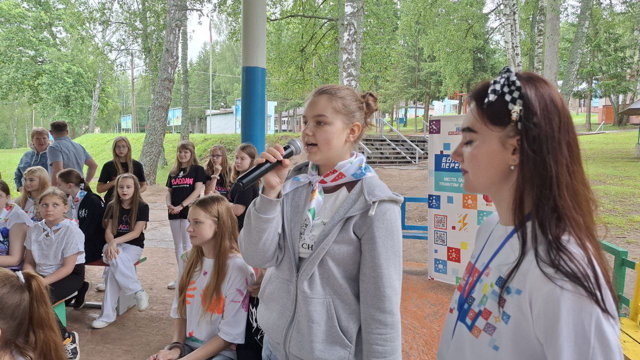 Подъем флага, гимн Большой Перемены, творческие номера — дали старт дню Большой Перемены в лагере.