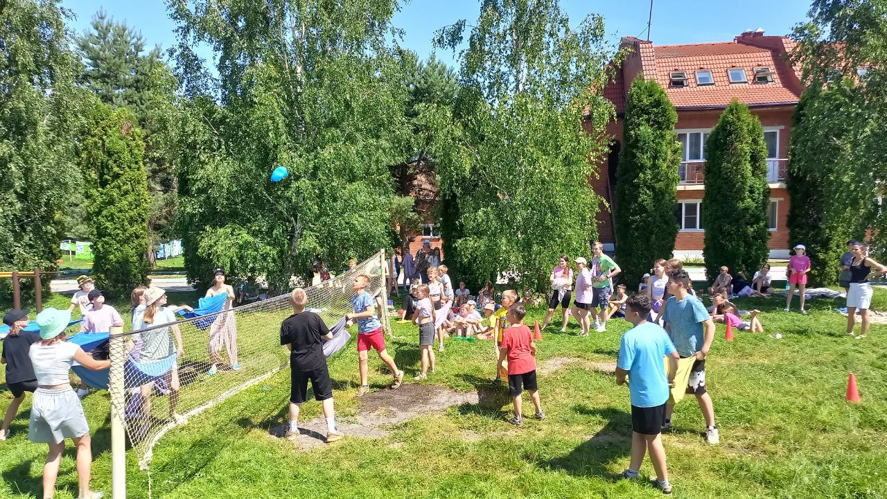 Сегодня, в самый жаркий день недели, отдыхающие играли в шарбол. Вы не знаете что такое шарбол?! Всё очень просто и весело. Берёте друга, пляжное полотенце, хорошее настроение и играете шариком, наполненным водой, как мячом. Только приготовьте таких шариков побольше. Они очень легко лопаются и обливают вас водой. В процессе игры её участники совмещают активное движение с водными процедурами.