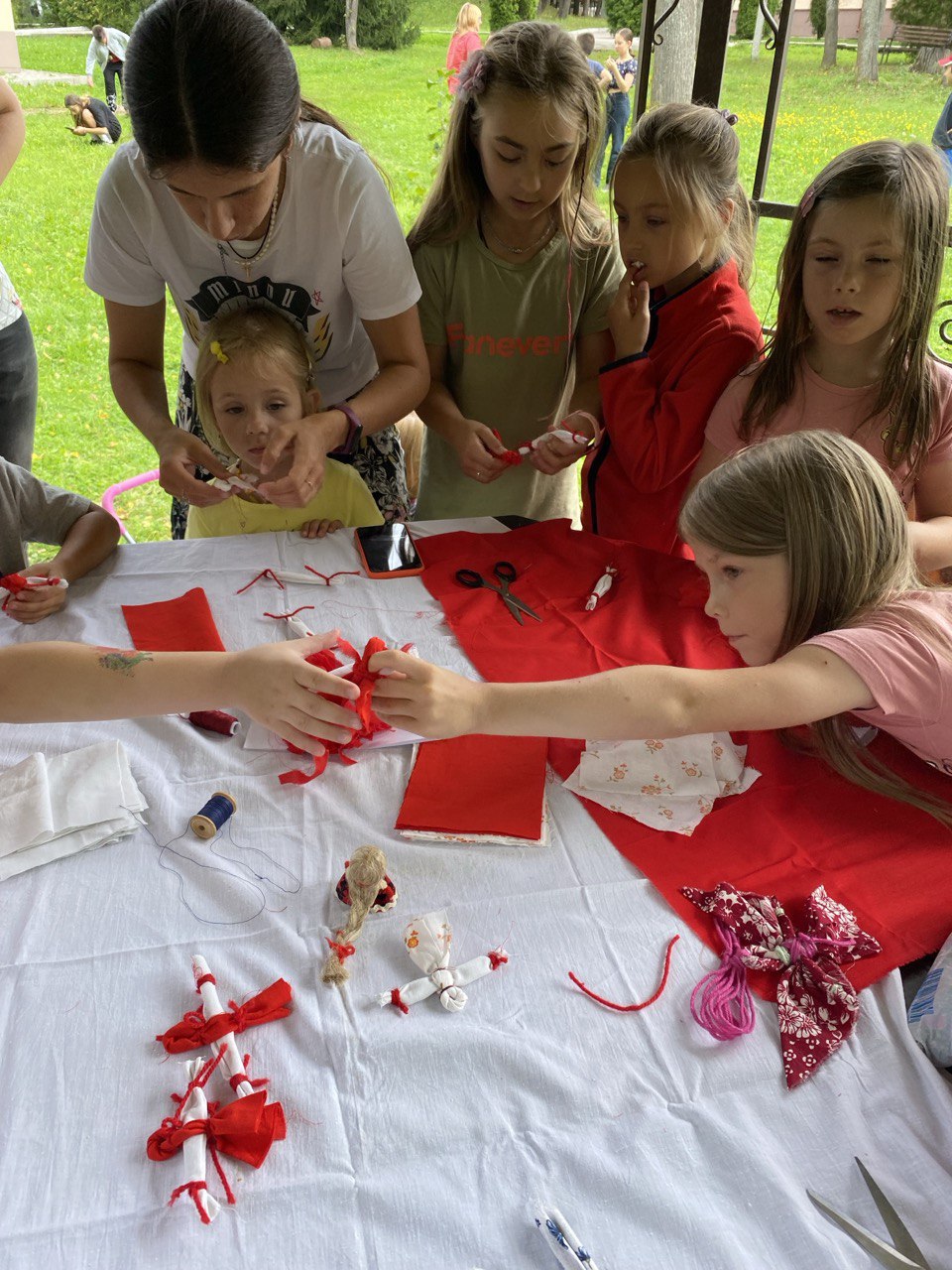 Участники угадывали животных, проживающих в нашей полосе, работали с картой местности и знакомились с топографическими знаками, собрались в поход и успели изготовить тульскую куклу-оберег «Кувадку».