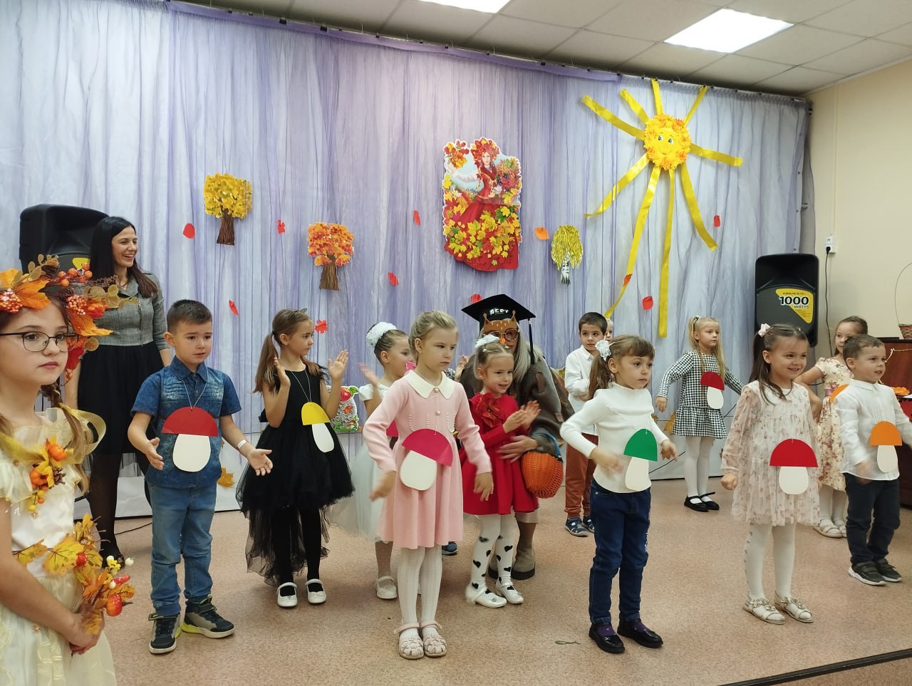 В гости к ребятам Осень пришла со своими подарками. Красивая и задорная она водила с детьми хороводы, играла, загадывала загадки, пела и танцевала. Самым запоминающимся стало появление Бабы Яги, Лисички-сестрички и тётушки Совы.  Ребята и родители  с удовольствием участвовали в конкурсах и  развлечениях. Время прошло очень весело и интересно.