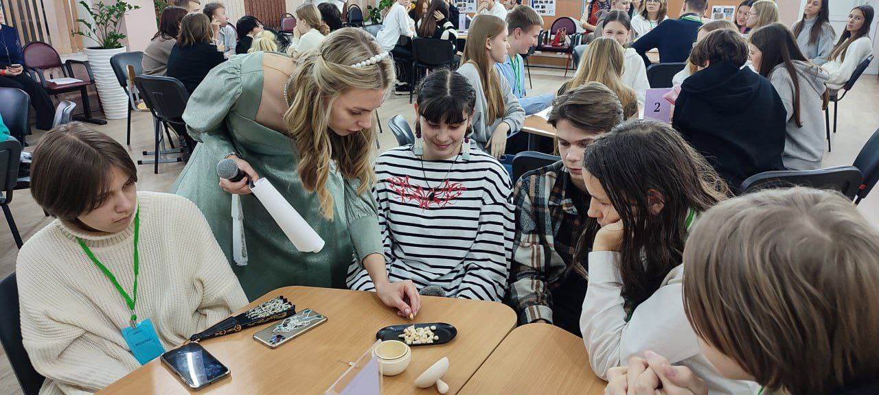 На маршруте школьники познакомились с Хранителем времени, стали участниками театрализованного мастер-класса по танцам ХVIII века, смогли пообщаться «языком веера», играли в русскую народную игру «Бирюльки» и разгадывали шарады XVIII века.