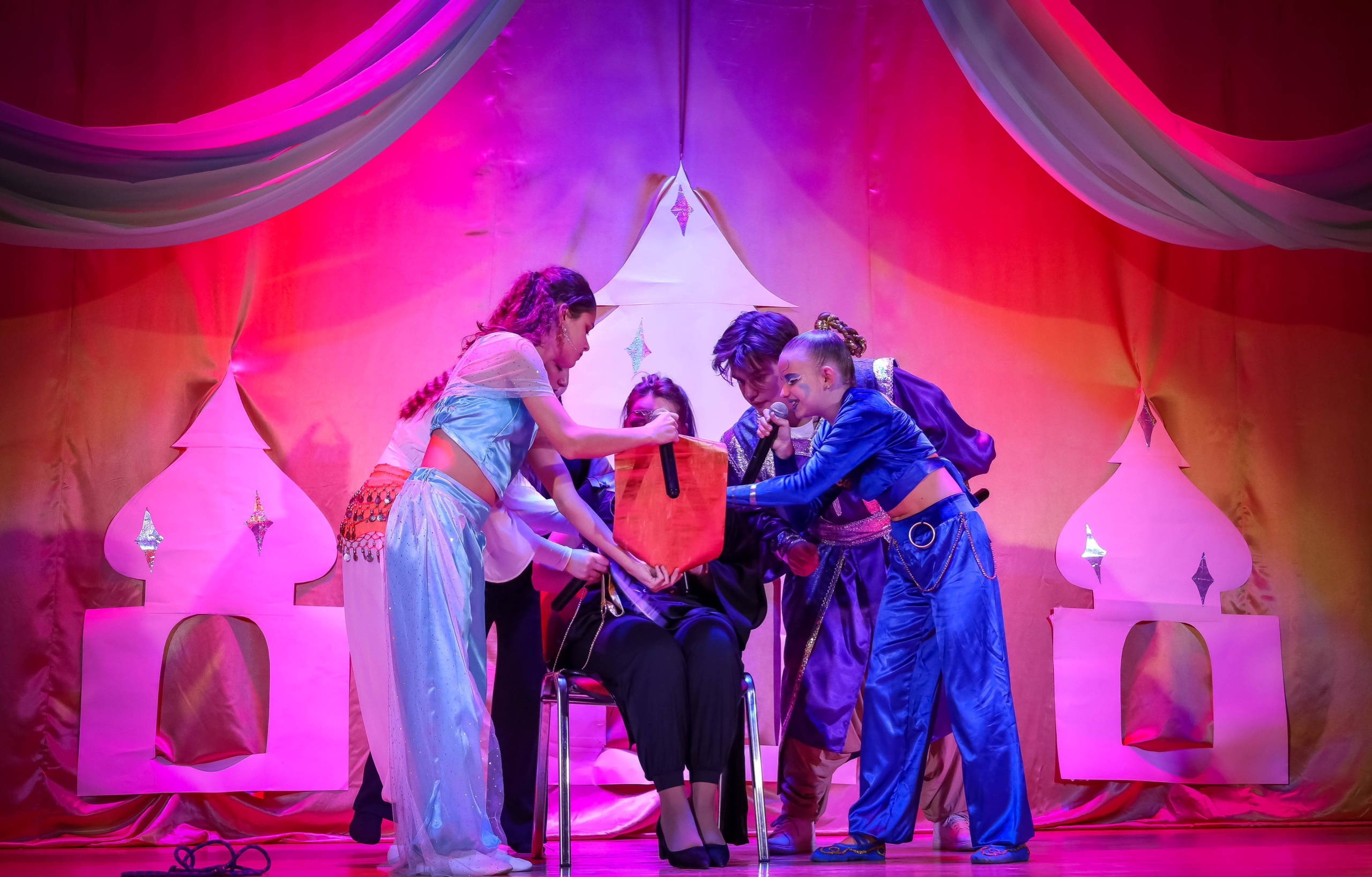 Вокальная шоу-группа Карамель и хореографический ансамбль Сюрприз представили историю о волшебной лампе: дворцовые интриги, любовь и, конечно, искромётный юмор. Яркая хореография и красивый вокал погружают зрителя в атмосферу востока и незабываемых приключений.