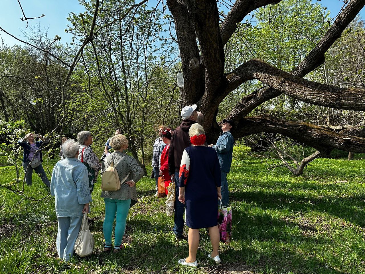 Участники экскурсии наблюдали цветение миндаля, узнали много интересных фактов о вековом дереве-памятнике – маньчжурском орехе, определили цветущие растения и плодовые деревья, а также изучили экосистему пруда. В зимнем саду они увидели тропические растения в период цветения.