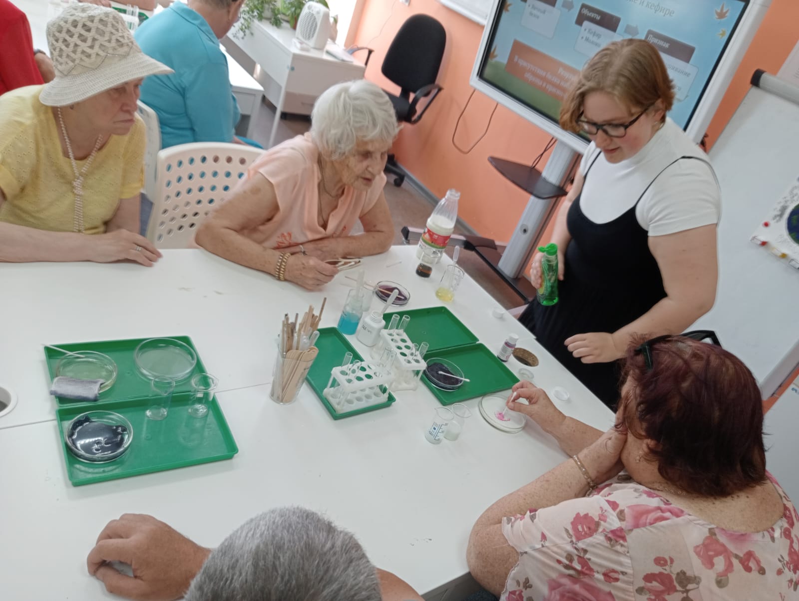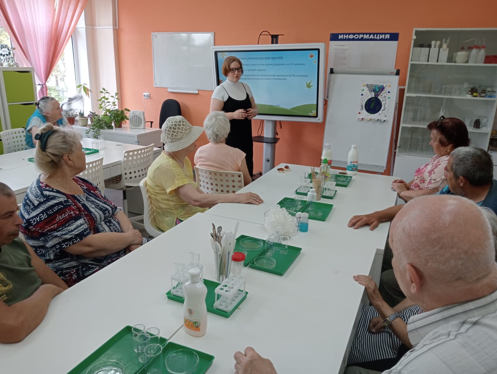 В ходе познавательной встречи участники посетили мастер-классы. На мастер-классе «Геродиететика или возрастная нутрициология» участники познакомились с основными подходами к выбору продуктов питания в связи со старением организма, лично проверили некоторые факты о составе молока и кефира и разрушили несколько диетических мифов.