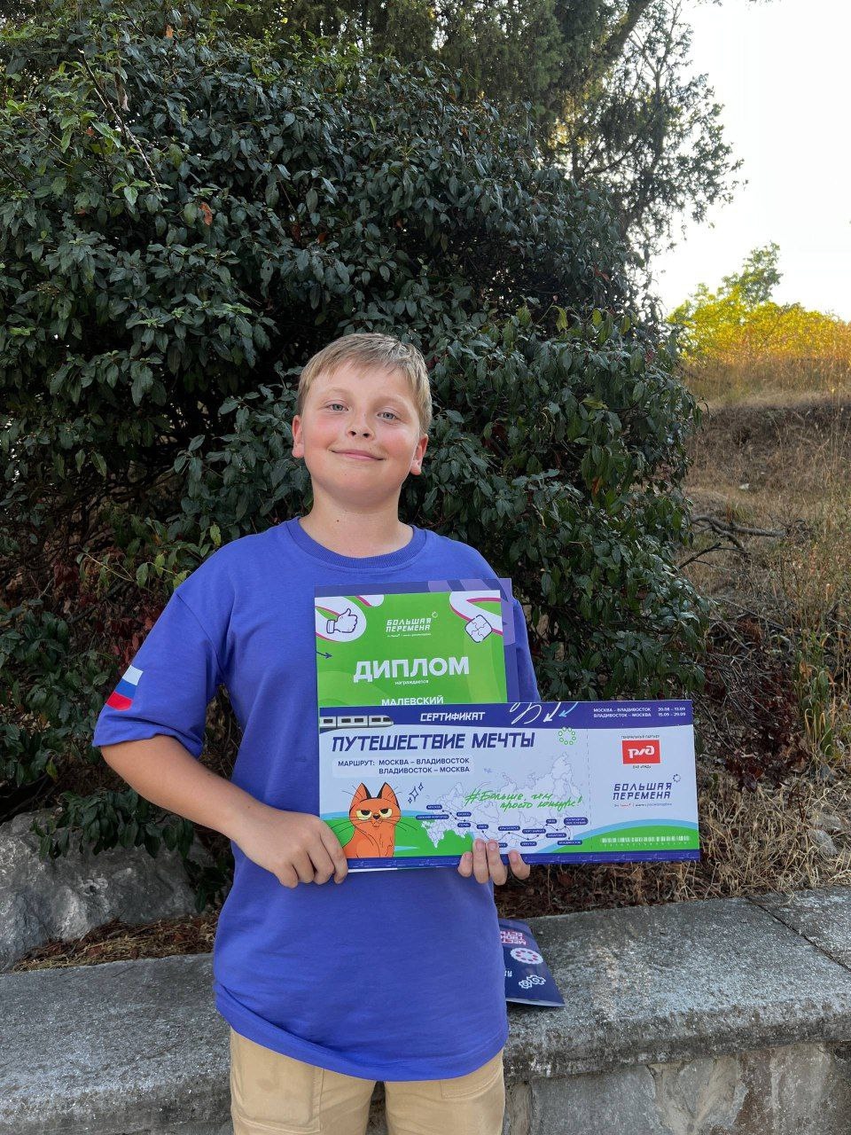 Теперь его ждет «Путешествие мечты!». Это образовательный маршрут от Москвы до Владивостока на специально подготовленном ОАО «РЖД» поезде для комфортного путешествия детей – победителей финала конкурса «Большая перемена».