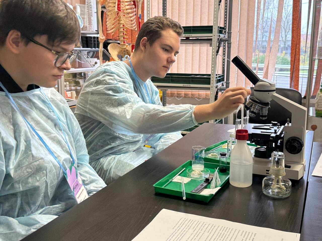 На профессиональной пробе «Технолог молочного производства» обучающиеся приготовили разведения бактериальной колонии, освоили методы окрашивания микроорганизмов и познакомились с современными достижениями биотехнологии.
