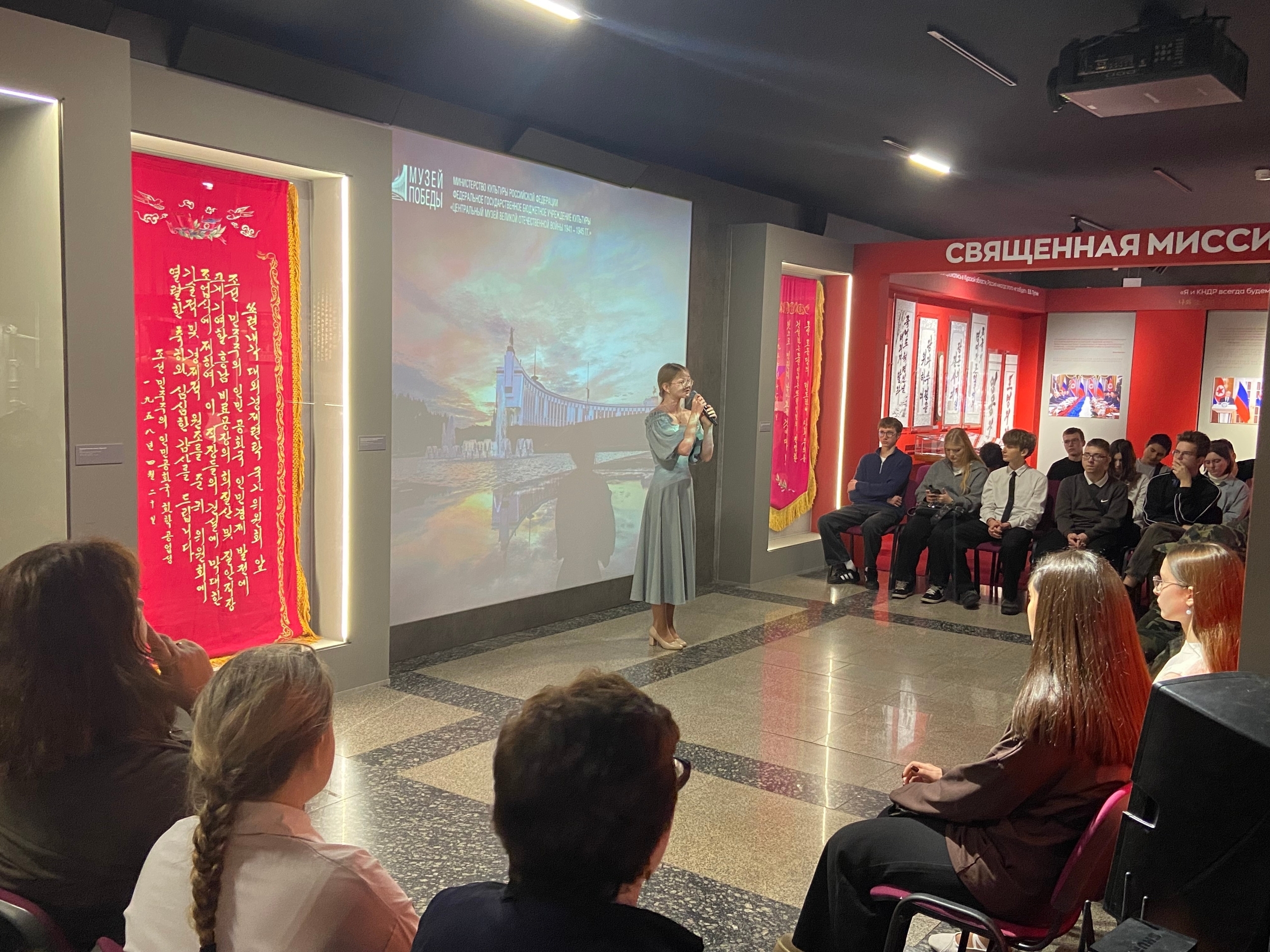 В зале музея центр образования организовал урок-концерт «Летопись нашей Победы», который был посвящен основным этапам и решающим моментам Великой Отечественной войны.