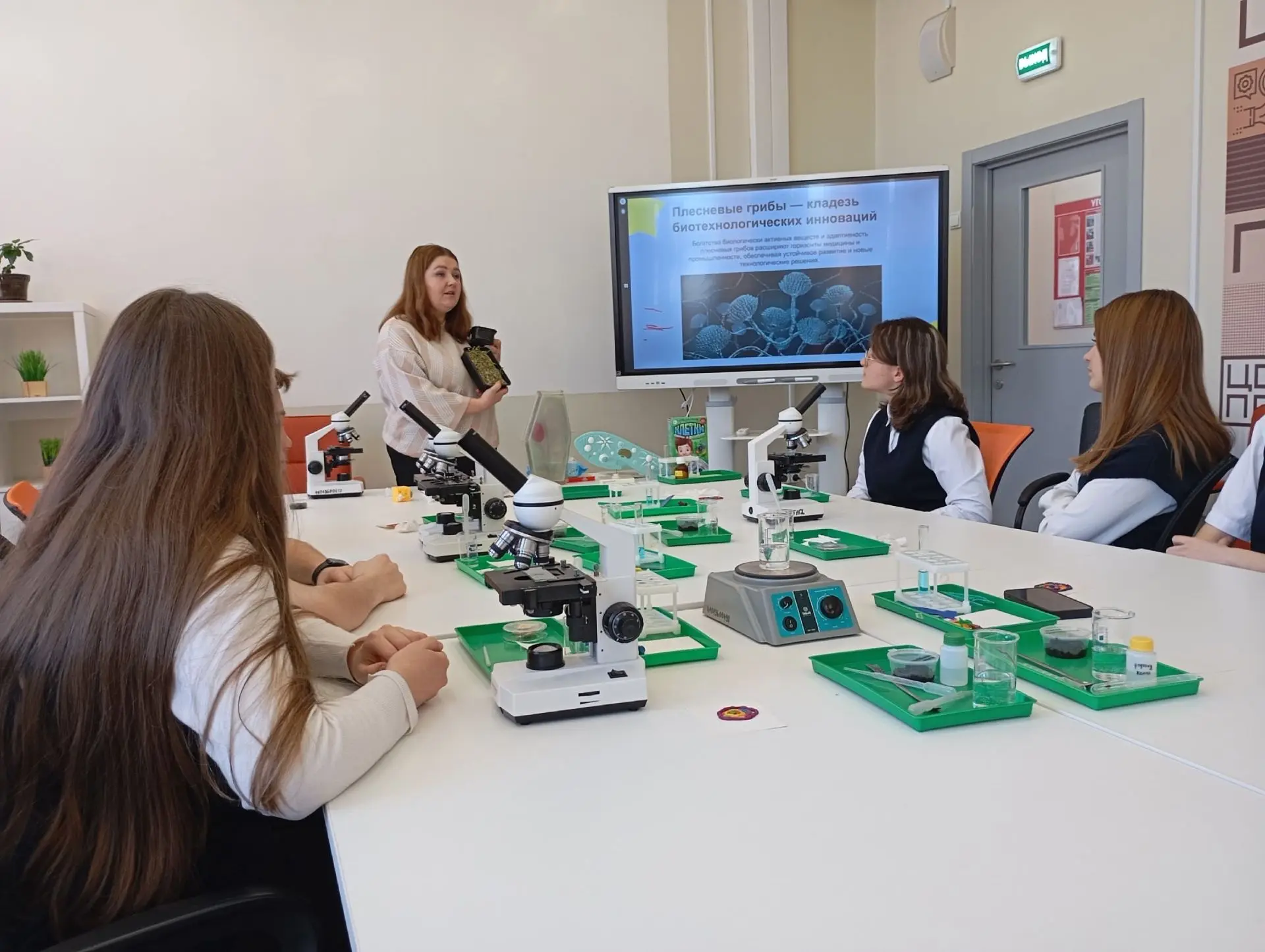 Мастер-класс «Плесневые грибы — герои биотеха» познакомил детей со строением самых распространенных микроскопических грибов и их уникальными свойствами. Ребята раскрыли роль плесени в производстве антибиотиков, ферментов и пищевых добавок.
