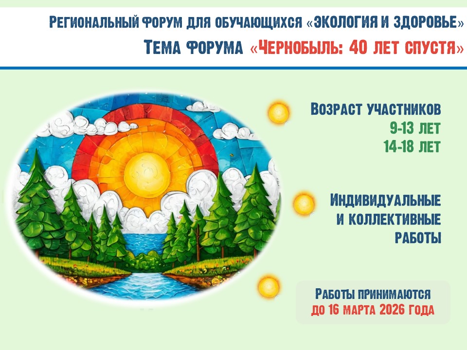 С 24 февраля по 9 апреля 2026 года проводится региональный форум для обучающихся «Экология и здоровье», приуроченный ко Всемирному дню здоровья.