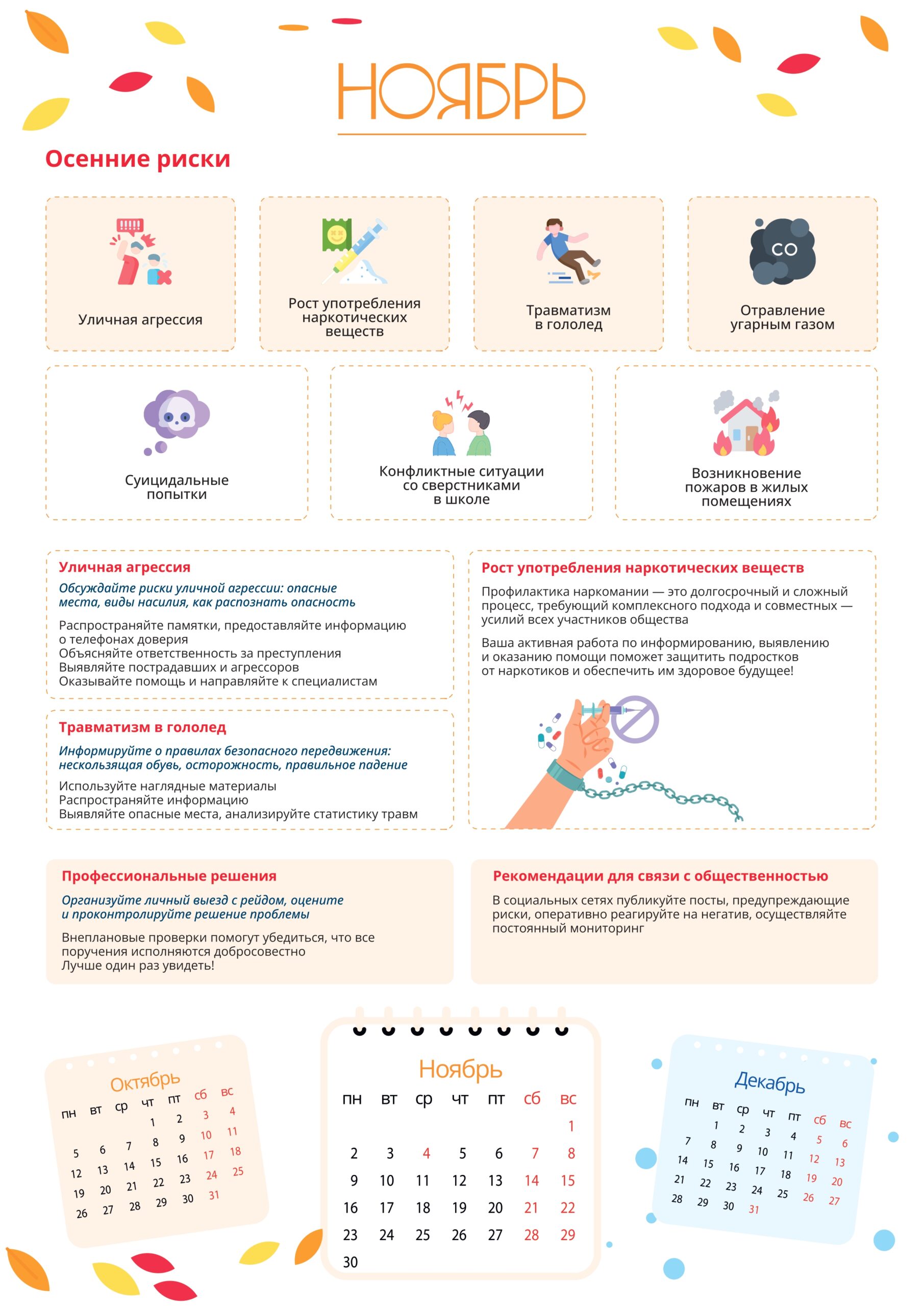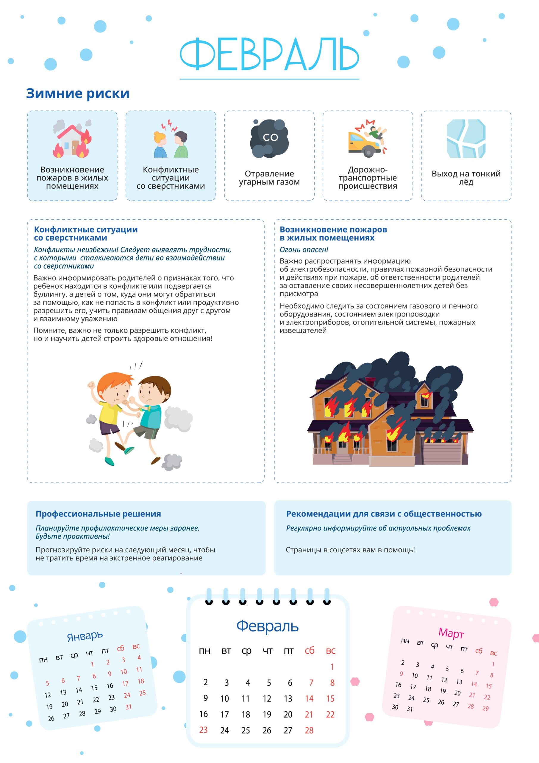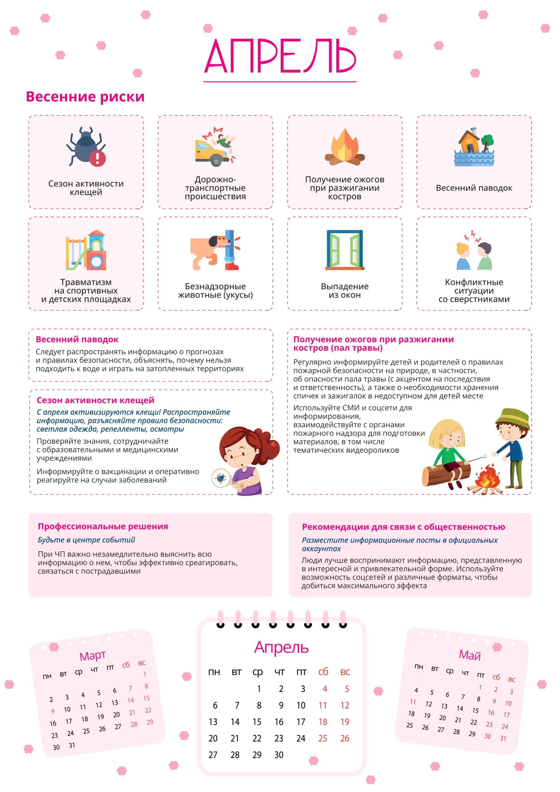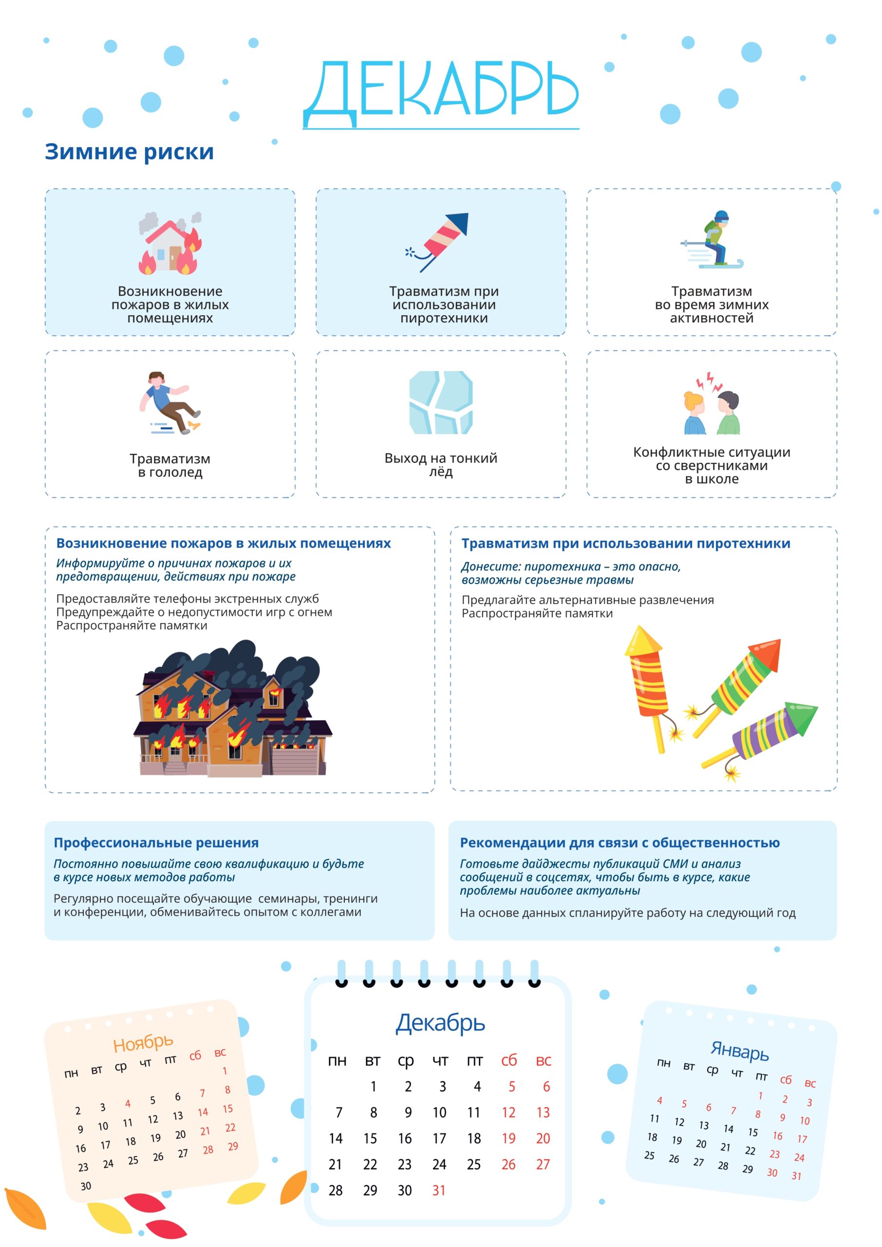 Сегодня представляем обновлённый документ «Календарь сезонных рисков 2026». Материал содержит комплексную информацию о потенциальных опасностях в различные периоды года и подробные рекомендации по их предотвращению.