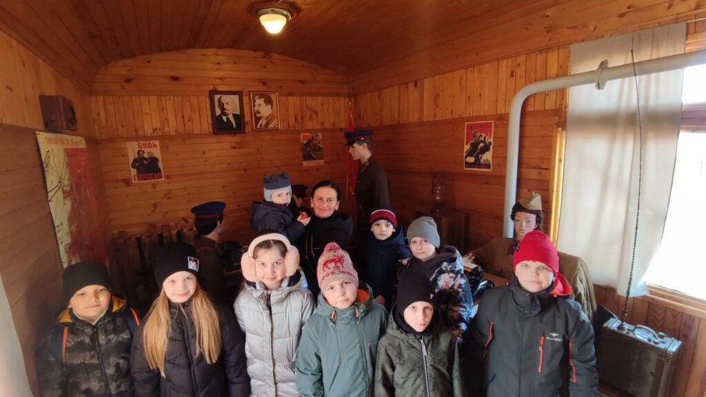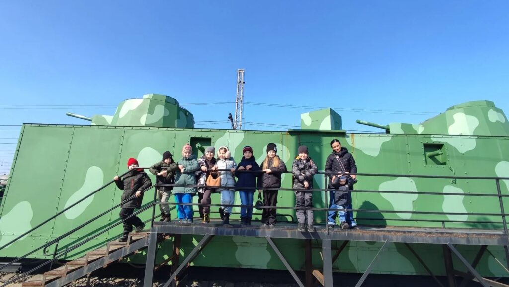 Команда обучающихся «Оружейная слобода» посетила Военно-мемориальный комплекс » Бронепоезд 13 » Тульский рабочий»». Экскурсия проходила в штабном составе состоящем из вагона- клуба, вагона- хлебопекарни, офицерского купейного и штабного вагонов, и в самом бронепоезде. Экспозиция включает подлинные награды, предметы быта, много манекенов солдат на своих боевых постах. Детям понравилась экскурсия и само посещение Московского вокзала.